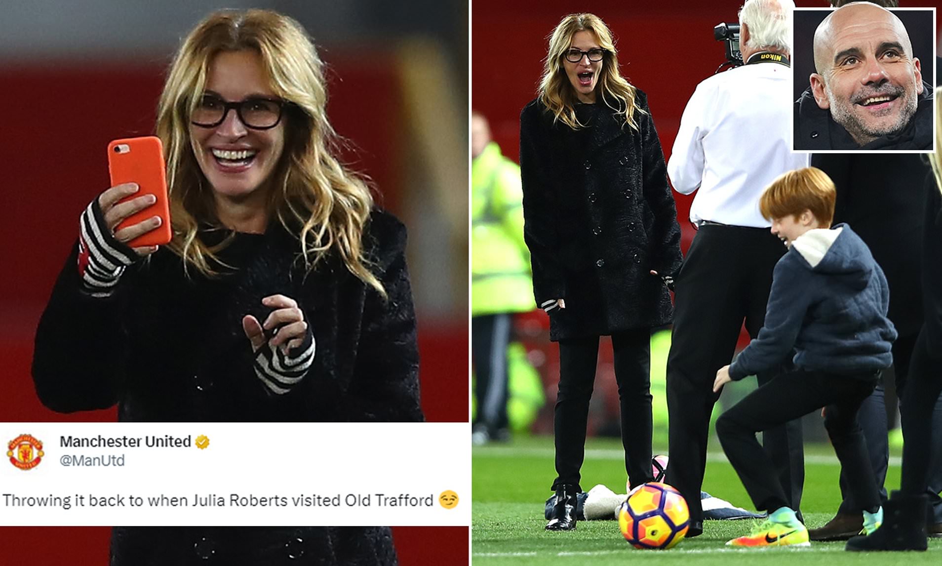 Julia Roberts - nữ diễn viên nổi tiếng người Mỹ vừa có thêm chuyến thăm MU và điều này chắc chắn sẽ khiến HLV Man City - Pep Guardiola phải ghen tỵ.
