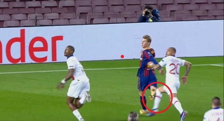 Pha va chạm giữa Kurzawa và De Jong diễn ra rất nhanh, nhìn thoáng qua có thể thấy rằng có vẻ như tiền vệ của Barca tự vấp vào chân mình rồi ngã xuống. Tuy nhiên, những góc quay chậm đã cho thấy trọng tài thổi 11m là chính xác.