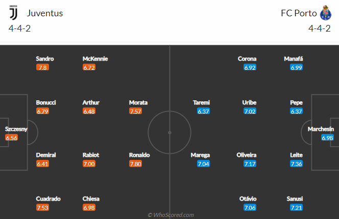 Bên phía đối diện, Porto có 2 cầu thủ không thể thi đấu vì chấn thương là Chancel Mbemba và Mouhamed Mbaye. Dẫu vậy, sự trở lại của hậu vệ kỳ cựu Pepe giúp đại diện Bồ Đào Nha tự tin vào việc ngăn chặn Juventus giành chiến thắng trên sân nhà. Trên hàng công, 2 cầu thủ đã xé lưới Juventus ở lượt đi là Marega và Taremi sẵn sàng xuất kích.
