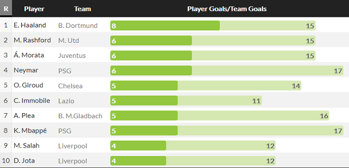 Top ghi bàn Champions League 20/21: Erling Haaland vươn lên dẫn đầu
