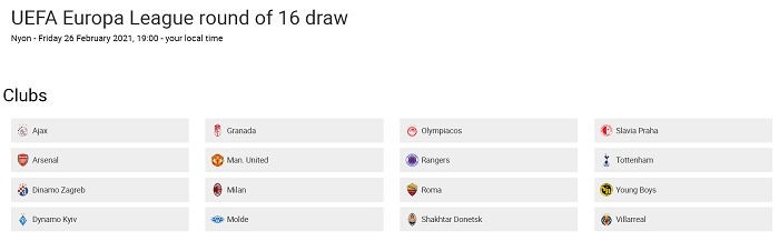 Tags (Từ khóa): vòng 1/8 europa league bốc thăm vòng 1/8 europa league europa league 2020/21 MU arsenal tottenham AC Milan