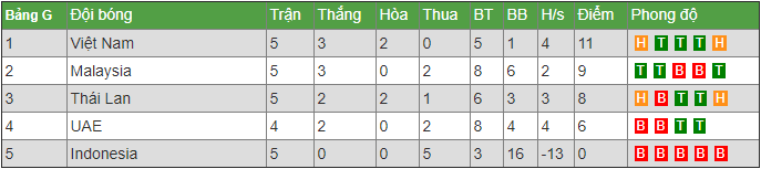 Bảng xếp hạng bảng G vòng loại World Cup 2022