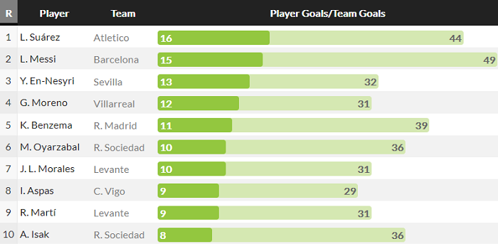 Bảng xếp hạng Top ghi bàn La Liga 20/21 tính đến ngày 14/2