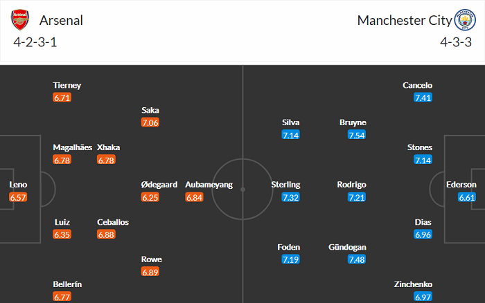 Đội hình dự kiến Arsenal vs Man City