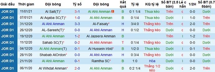 + Thống kê 10 trận gần nhất của Ahli Amman