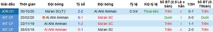 + Lịch sử đối đầu Ahli Amman vs Ma'an