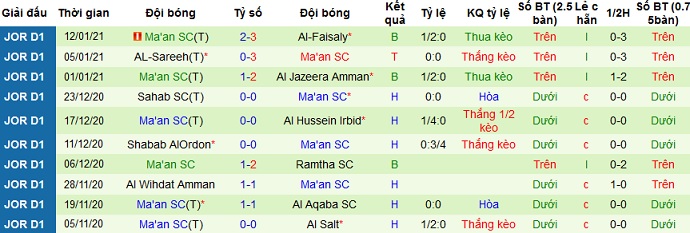 + Thống kê 10 trận gần nhất của Ma'an