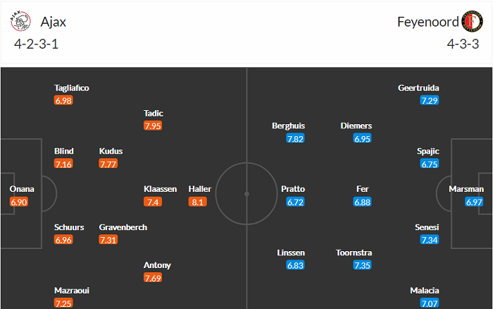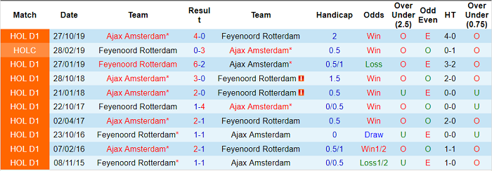 4/6 lần so tài gần đây giữa Ajax và Feyenoord chứng kiến từ 4 bàn trở lên. 5/6 trận sân nhà vừa qua của Ajax thuộc khuôn khổ giải VĐQG Hà Lan cũng kết thúc với không dưới 4 pha lập công. Ajax và Feyenoord vì thế hứa hẹn cùng nhau chinh phục thành công mốc Tài Xỉu là 3 1/4.