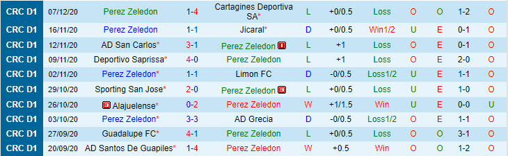+ Thống kê 10 trận gần nhất của Perez Zeledon