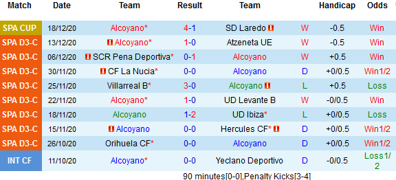+ Thống kê 10 trận gần nhất của Alcoyano