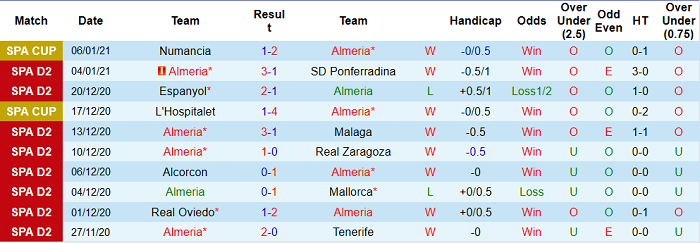 - Thống kê 10 trận gần nhất của Almeria