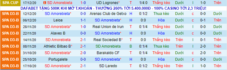 Amorebieta đang trải qua chuỗi 6 trận bất bại liên tiếp. Không phủ nhận Amorebieta là một trong những CLB có khả năng tận dụng sân bãi rất tốt. Đội chủ nhà bất bại ở 8 lần đón khách gần nhất, trong đó giành 6 chiến thắng.