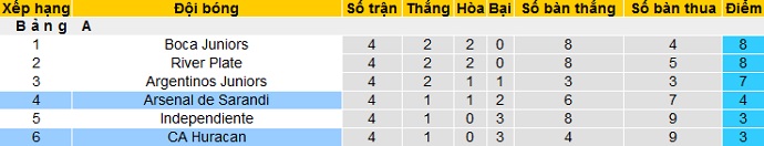 Sau 4 vòng đấu tại vòng chung kết của giải chuyên nghiệp Argentina, Arsenal Sarandi mới có được 4 điểm và chỉ đang đứng thứ tư tại bảng A. Kém cả 2 đội đầu bảng tới 4 điểm trong khi bảng chỉ còn 1 vòng đấu nữa nên cơ hội để cạnh tranh ngôi đầu đã không còn với Arsenal Sarandi.