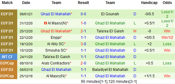 + Thống kê 10 trận gần nhất của Ghazl El Mehalla