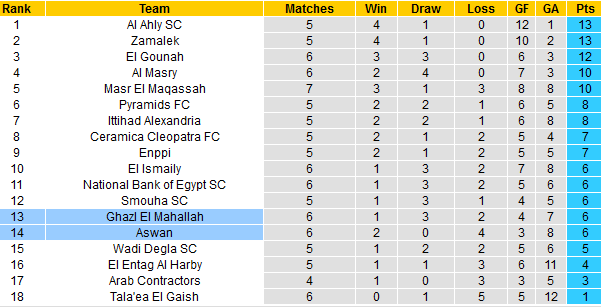 Bởi thực tế, dù cùng có 6 điểm nhưng Aswan và Ghazl El Mehalla lại thể hiện những hình ảnh khác nhau. Nếu như Aswan đã thua tới 4 trận nhưng đổi lại họ có 2 chiến thắng thì Ghazl El Mehalla mới 2 lần bị đánh bại nhưng chỉ có 1 lần được ca khúc khải hoàn.