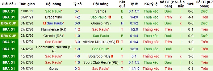 + Thống kê 10 trận gần nhất của São Paulo