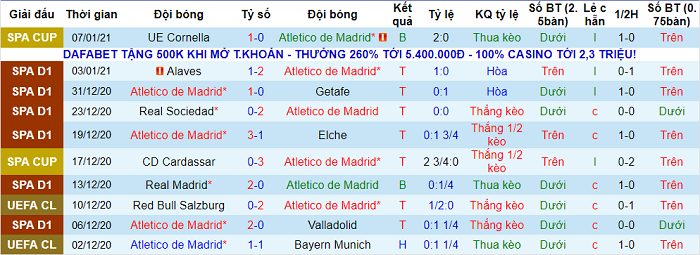Thống kê cho thấy: Atletico Madrid là đội có tỷ lệ thắng kèo cao nhất La Liga 2020/21. Tỷ lệ thắng kèo của Atletico Madrid tại La Liga mùa này lên tới 66.67%: thắng 10, hòa 2, thua 3.