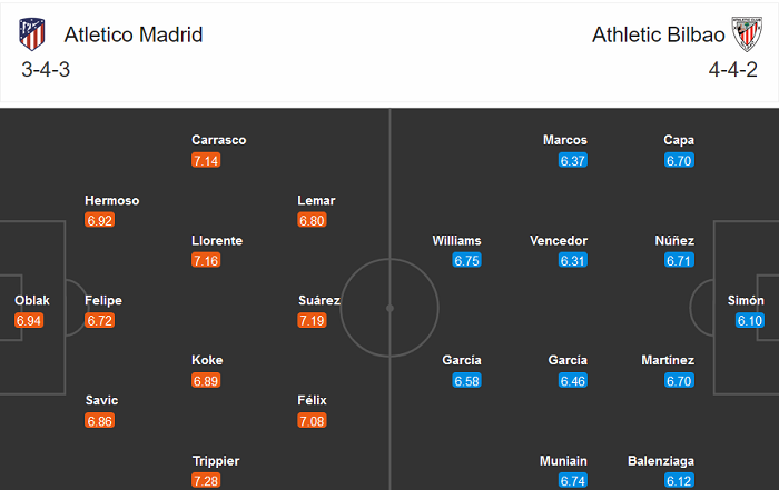 Đội hình dự kiến Atletico Madrid vs Bilbao
