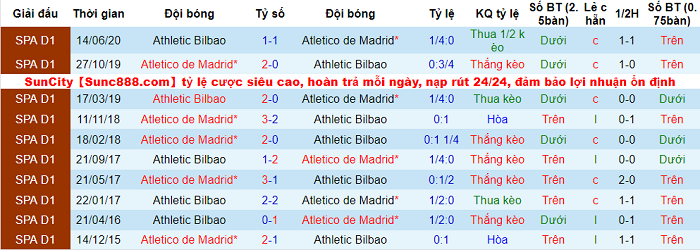 Trên sân nhà, tỷ lệ thắng kèo của Atletico còn ấn tượng hơn. Tỷ lệ thắng kèo của họ tại La Liga mùa này lên tới 75%: thắng 6, hòa 1, thua 1. Trong khi đó, tỷ lệ thắng kèo trên sân khách của Bilbao tại La Liga mùa này chỉ đạt 22.22%: thắng 2, hòa 1, thua 6.