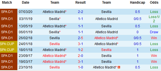 + Lịch sử đối đầu Atletico Madrid vs Sevilla