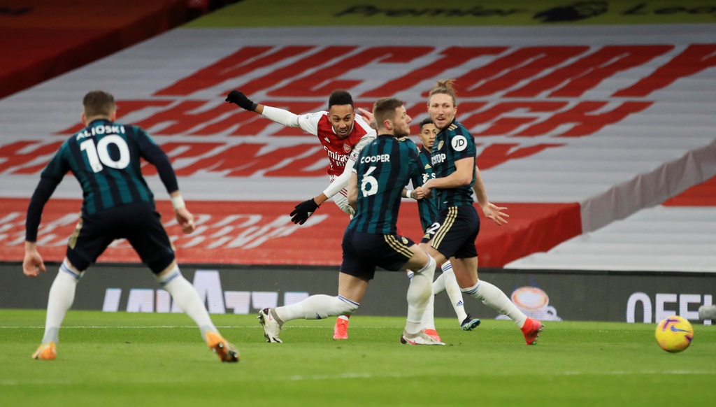 Trong chiến thắng 4-2 trước Leeds United của Arsenal, tiền đạo Pierre-Emerick Aubameyang có cú hat-trick đầu tiên tại giải Ngoại hạng Anh
