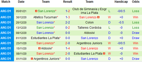 + Thống kê 10 trận gần nhất của San Lorenzo