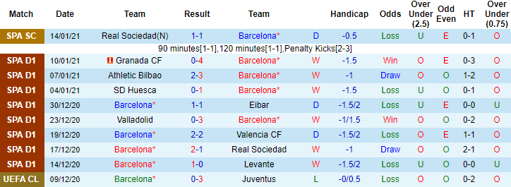 Barcelona đã phải nhờ đến may mắn mới có thể vượt qua Sociedad tại bán kết Siêu Cúp Tây Ban Nha mùa này ở loạt sút luân lưu (hòa 1-1 sau 120 phút). Trận chung kết sắp tới Barca đối đầu một đội bóng xứ Basque khác là Bilbao. Lần gần nhất gặp nhau ở một giải đấu Cúp, Barcelona đã bị Bilbao đánh bại 0-1 tại tứ kết Cúp Nhà vua.