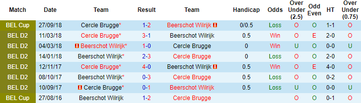 Cercle Brugge có những kỷ niệm đẹp trong các chuyến làm khách đến sân của Beerschot Wilrijk. 4 lần chạm trán gần đây mà Beerschot Wilrijk sở hữu lợi thế về mặt sân bãi, Cercle Brugge giành chiến thắng tới 3 lần. Tuy nhiên ở lần tái đấu sắp tới, Cercle Brugge sớm cho thấy khả năng thoát thua của họ khó xuất hiện.