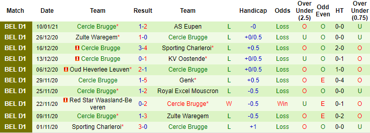 + Thống kê 10 trận gần nhất của Cercle Brugge