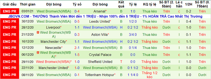 - Thống kê 10 trận gần nhất của West Brom