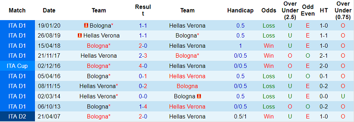 Phong độ và thống kê đối đầu Bologna - Hellas Verona gần đây