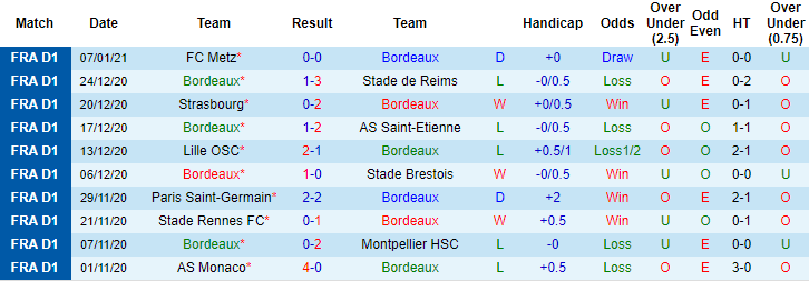 + Thống kê 10 trận gần nhất của Bordeaux