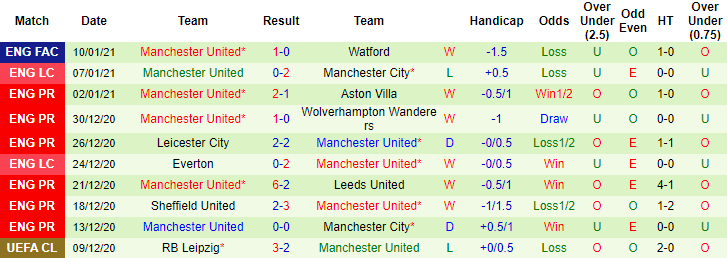 + Thống kê 10 trận gần nhất của Man United