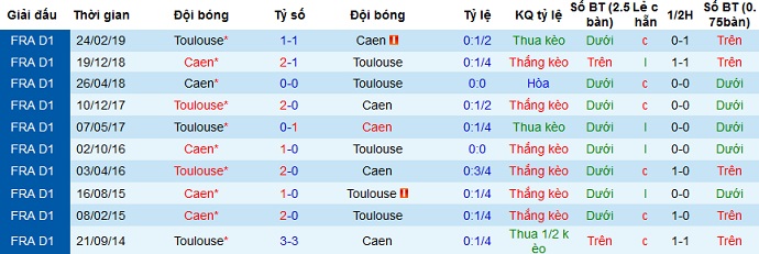 Trong mùa giải trước chính Caen mới là đội giành ưu thế trong 2 lần đối đầu khi thắng trên sân nhà và hòa trên sân của Toulouse. Thế nhưng hiện tại Toulouse đang rất cần một chiến thắng để cạnh tranh ngôi đầu với Troyes và sẽ giành được vị trí đầu bảng nếu thẳng ở trận đấu này. Vì thế lựa chọn cửa trên là điều khá hợp lý khi Caen không có quá nhiều động lực để thi đấu.