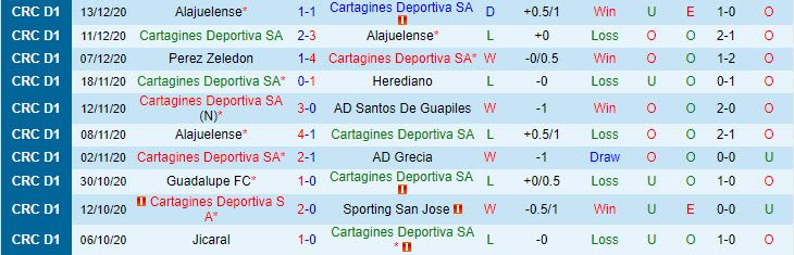 + Thống kê 10 trận gần nhất của Cartagines