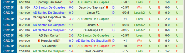 Cũng cần lưu ý, Santos Guapiles chỉ là đội bóng lót đường của giải VĐQG Costa Rica. Lùi lại giai đoạn lượt đi, Santos Guapiles thi đấu thất thường khi tháng có 2 trận, còn lại là 8 trận hoà và thua 6 trận, qua đó đúng áp chót bảng A lượt đi.