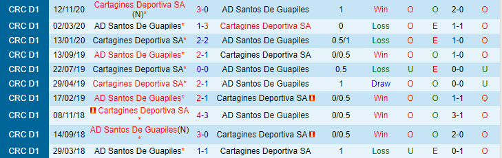 Phong độ và thống kê đối đầu Cartagines - Santos Guapiles gần đây: