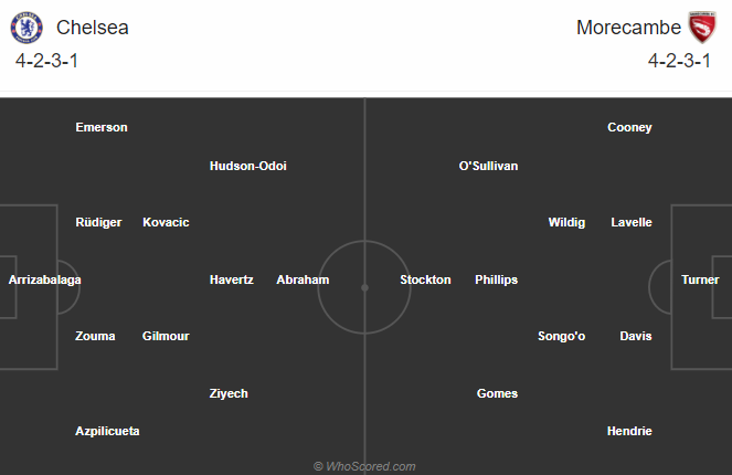 Đối thủ của Chelsea là Morecambe đang thi đấu vào phom với 4 trận toàn thắng cả về tỷ số và kèo châu Á. Tuy nhiên Morecambe chỉ là một đội bóng hạng 4, đội hình mạnh nhất của họ cũng khó có thể so sánh được với đội dự bị của Chelsea. Giá trị của đội hình tân binh 200 triệu bảng mà Chelsea mang về ở kỳ chuyển nhượng hè 2020 hứa hẹn sẽ được phát huy ở trận đấu sắp tới.