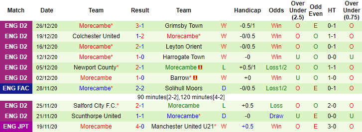+ Thống kê 10 trận gần nhất của Morecambe