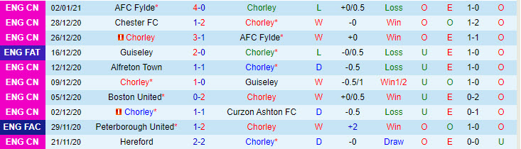 Chorley khởi đầu năm 2021 với trận thua thảm hại 1-4. Theo thống kê, 3 trận vừa rồi của Chorley đều đem niềm vui thắng kèo cho các nhà đầu tư kết Tài. Chọn Tài.