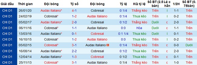 + Lịch sử đối đầu Cobresal vs Audax Italiano