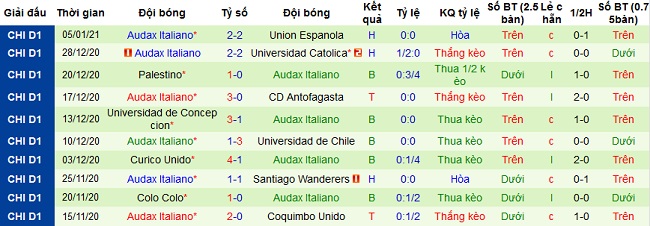 Tuy nhiên thành tích gần đây của Audax Italiano cũng không đến nỗi quá tệ với 1 trận thắng, 2 trận hòa và 2 trận thua sau 5 trận gần nhất. Điều đáng lo ngại là thành tích du đấu của đội bóng cực kỳ tệ khi để thua cả 5 trận sân khách gần nhất, bao gồm cả trận đấu tại Copa Sudamericana.