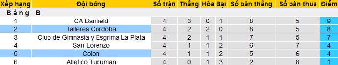 Trước loạt trận cuối cùng của bảng B tại vòng chung kết giải chuyên nghiệp Argentina, Colon đang đứng áp chót của bảng B khi mới chỉ có 4 điểm sau 4 vòng đấu. Trái lại Talleres Córdoba đang đứng ở vị trí thứ nhì của bảng đấu với 8 điểm.