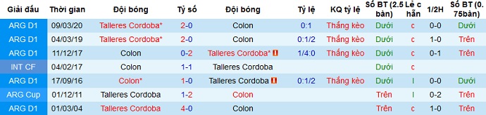 Tỷ lệ kèo Colon vs Talleres Córdoba