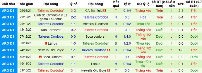+ Thống kê 10 trận gần nhất của Talleres Córdoba