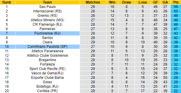 Corinthians toàn thua cả 4 trận đối đầu Fluminense gần đây tại giải VĐQG Brazil. Trên bảng xếp hạng Serie A 2020/21, Fluminense đang xếp trên Corinthians 3 bậc. Cụ thể, Fluminense xếp thứ 7 với 43 điểm sau 28 trận, Corinthians có 39 điểm, xếp ở vị trí thứ 10.