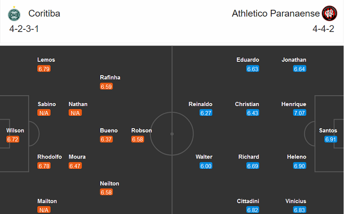Đội hình dự kiến Coritiba vs Athletico PR