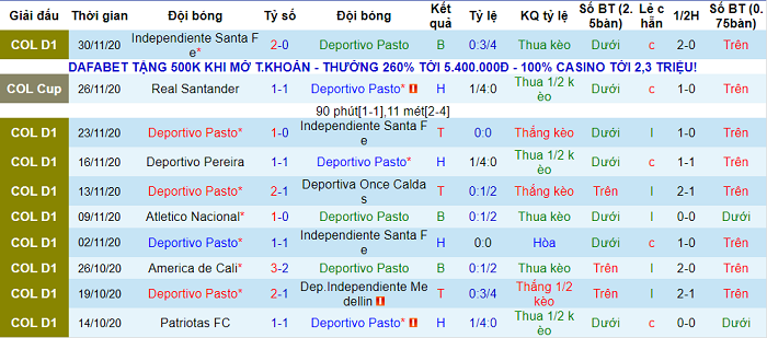 Deportivo Pasto thắng kèo tới 5/7 trận sân nhà gần nhất. Lựa chọn Deportivo Pasto vì thế hứa hẹn mang tới sự an toàn cho giới đầu tư.