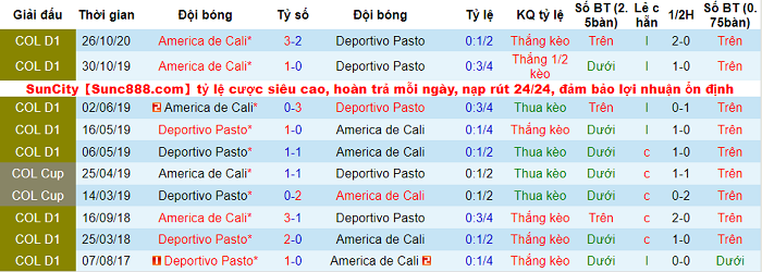 Tỷ lệ kèo Deportivo Pasto vs America de Cali