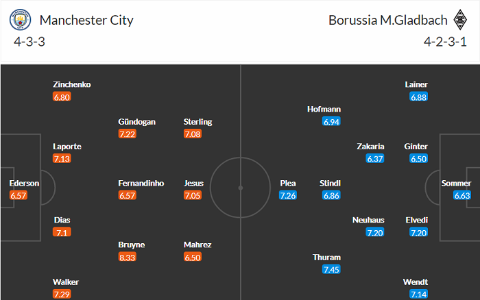 Đội hình dự kiến Man City vs M’Gladbach